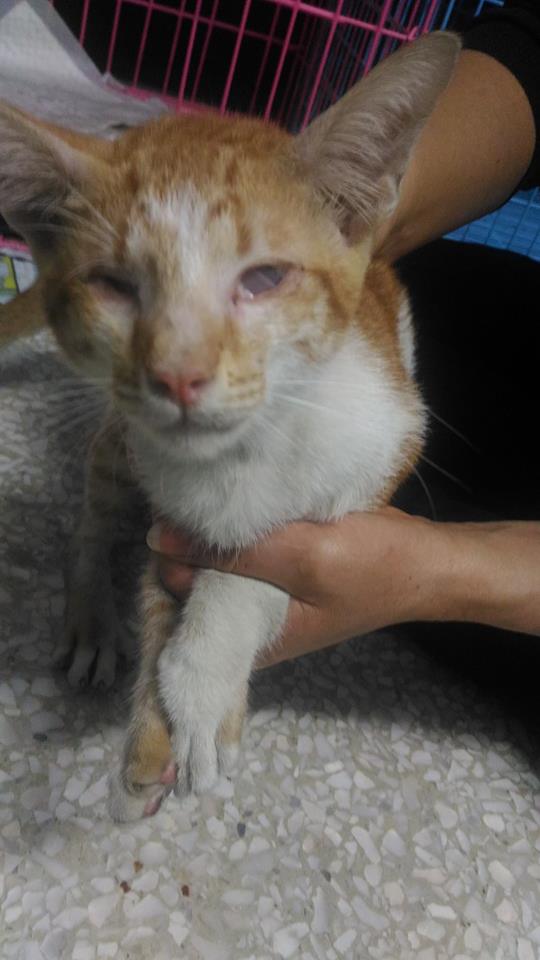 น้องเงินล้าน แมวจรเป็นหวัดจนตาเสียไปข้างหนึ่ง เราพาไปรักษาแล้ว ตาข้างนึงเสีย อีกข้างยังมองเห็นแต่ไม่ชัดเจน