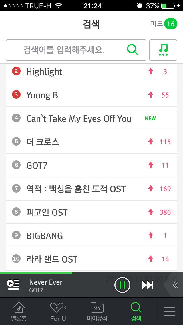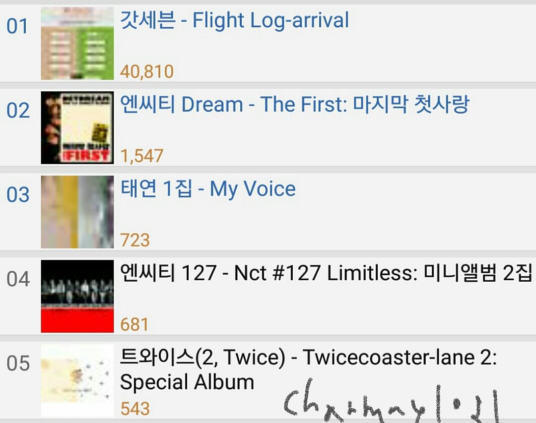 ชาร์ตเพลงก็ไม่ได้ย่ำแย่ ตอนนี้กำลังค่อยๆไต่ขึ้น (update 0.30 KST)