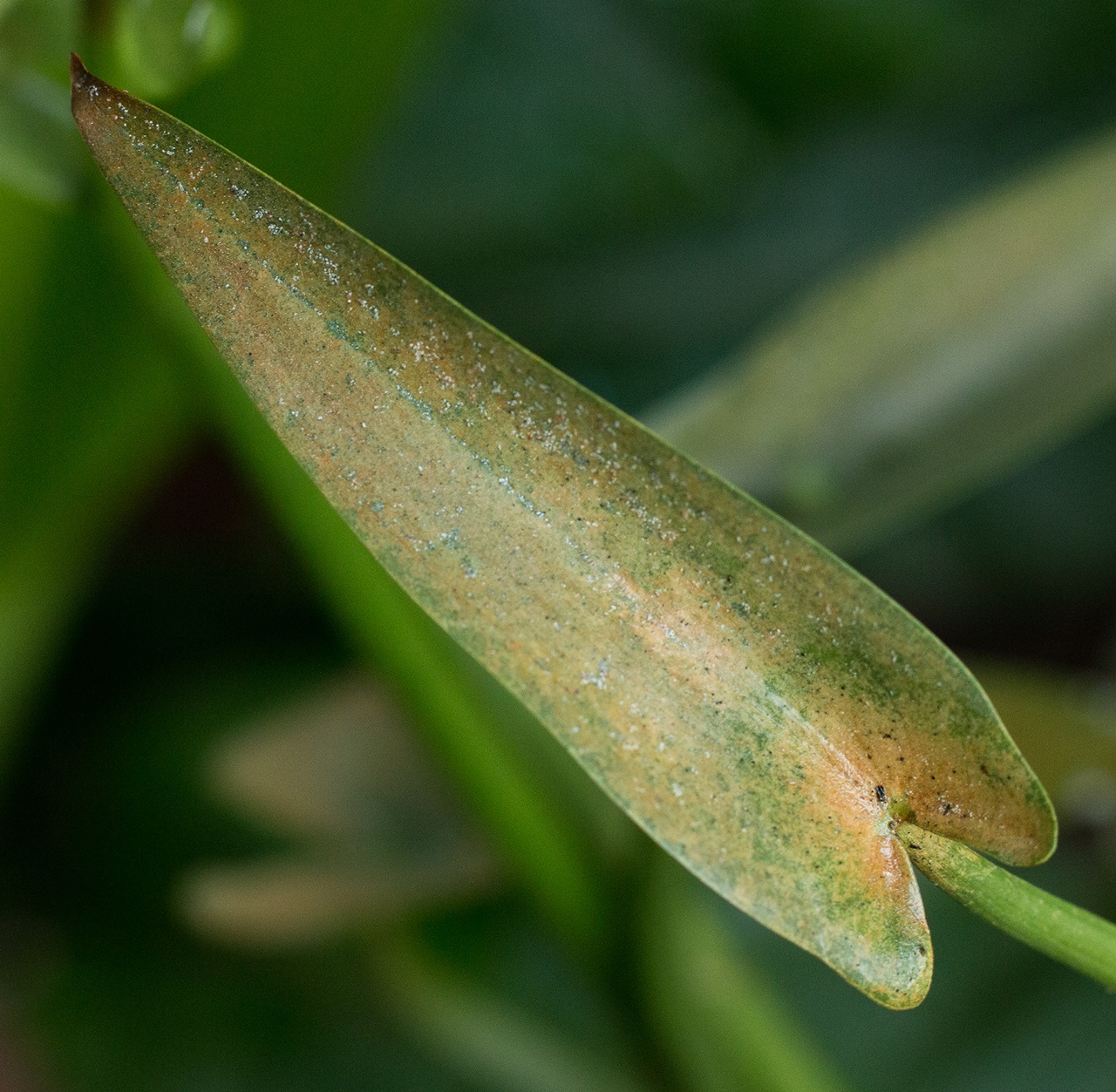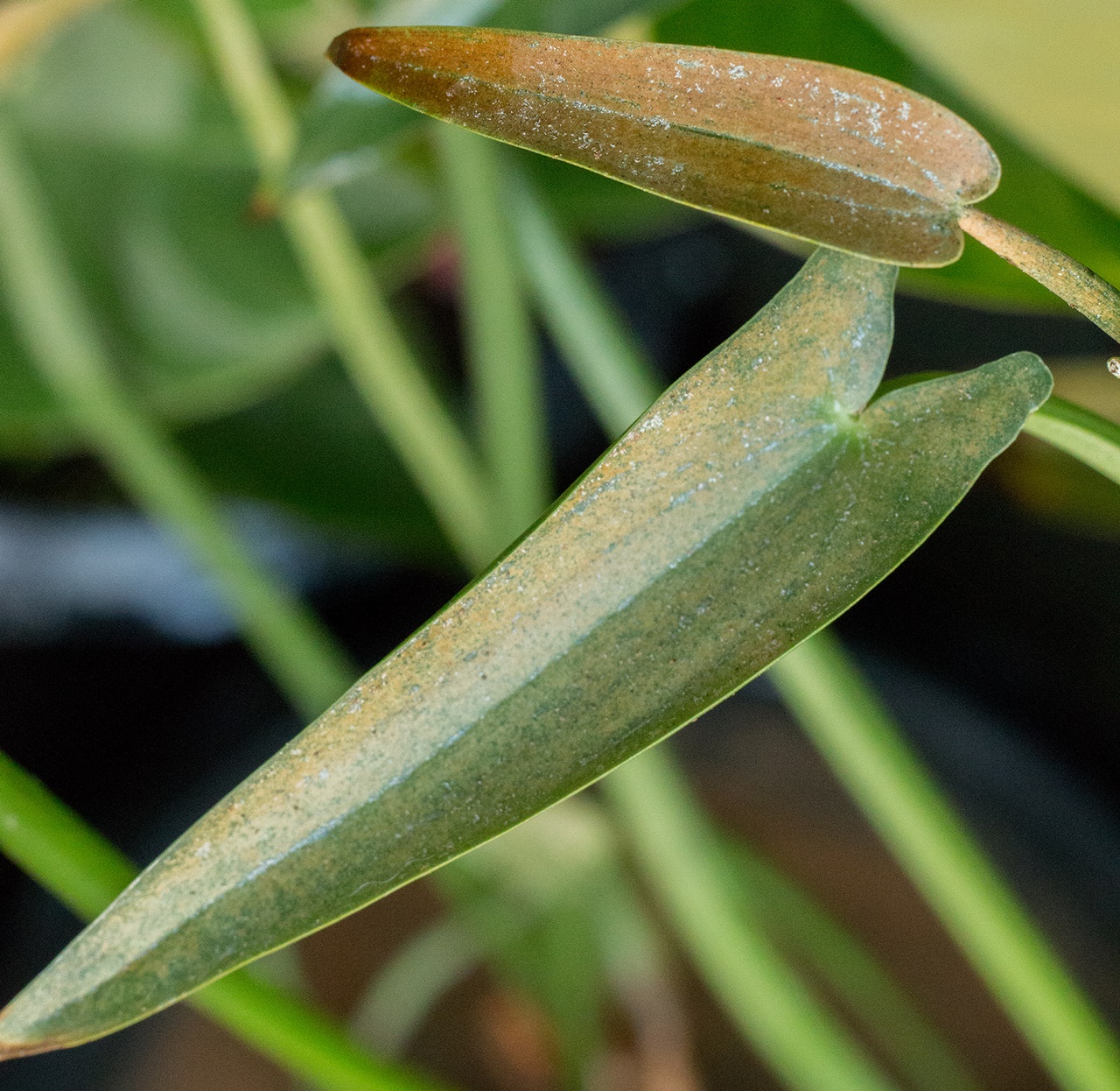 ใบไม้เปลี่ยนสีเหมือนสนิมขึ้น และมีจุดขาว เกิดจากอะไรครับ