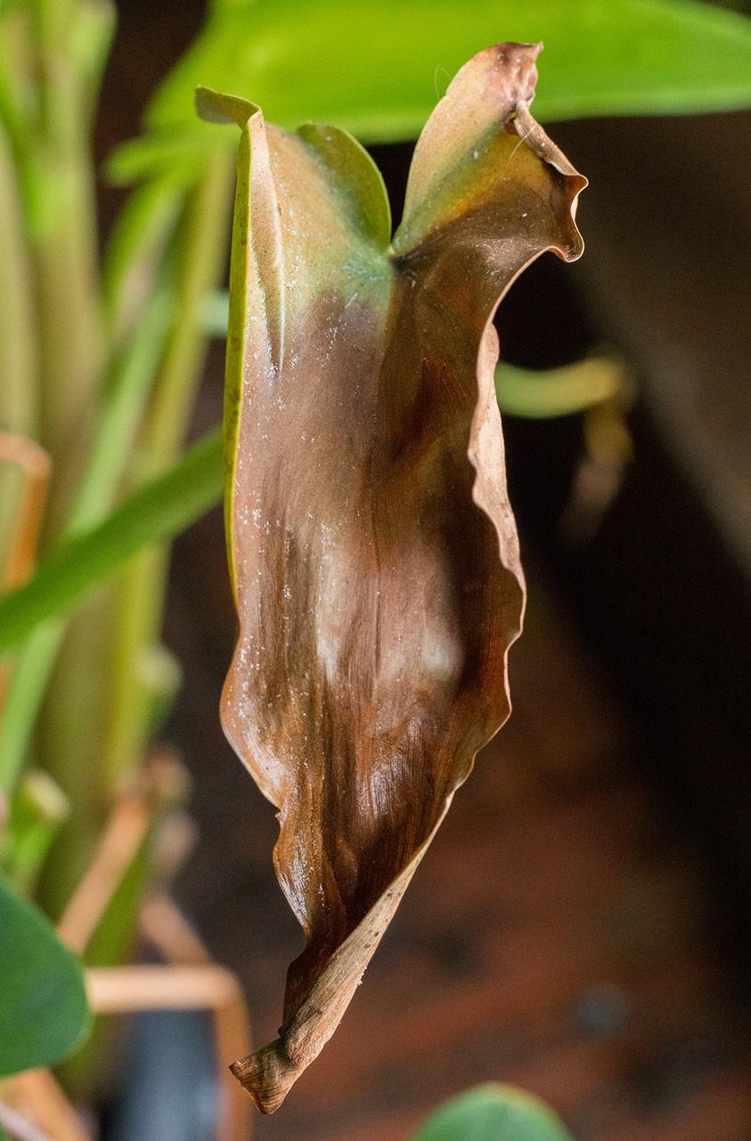 (รดต้นอื่น ๆ แล้วมาโดน) กระถางวางไว้ในที่ร่ม แต่มีแสงทั้งวัน ไม่โดนแดดโดยตรง