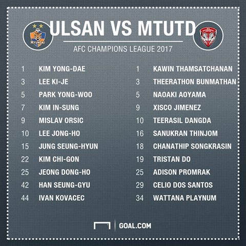 ถ่ายทอดสดช่อง ทรู สปอร์ต 7 แฟนเมืองทองมาลงชื่อเชียร์ได้ 11 ผู้เล่นตัวจริง 28 ประสิทธิ์ ผดุงโชค (GK) 2 พีระพัฒน์ โน๊ตชัยยา 5 นาโออากิ อาโอยามะ 6 สารัช อยู่เย็น (C) 7 เฮแบร์ตี้ แฟร์นานเดส 14 สรวิ