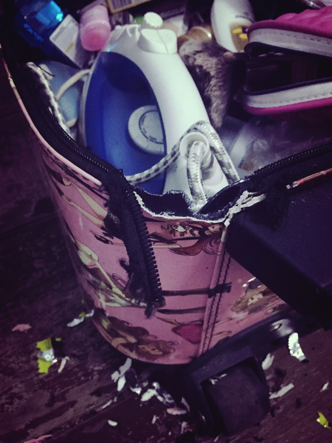 กระเป๋าลากโดนหนูแทะ กัดซิบขาดแทะไปยันขอบกระเป๋าค่ะ