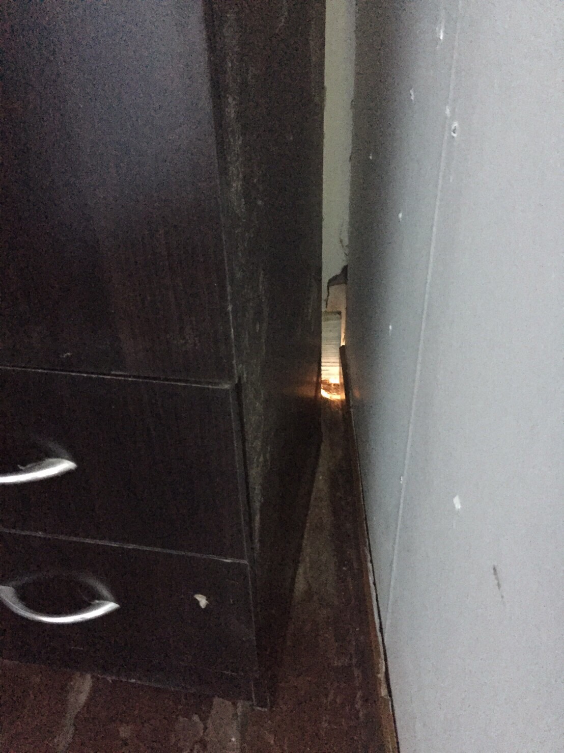 "วิ่งลงจากเตียงที่เรานอน" นี่ก็แบบเฮ้ย ใกล้ตัวไปรึเปล่า นอนไม่หลับละ ไม่กลัวนะคะ แต่รู้สึกว่าโดนคุกคามเกินไป นี่ไปอาบน้ำใหม่ (เริ่มรู้สึกไม่สะอาดเกินกว่าที่จะรับไหว ปกติทำงาน เครือรพ.เอกชนชื่อดังที่นึงค่ะ เรื่องความสะอาดและความปลอดภัยที่จะรับ หรือ ส่งต่อถึงผู้ป่วยคือสำคัญที่สุดค่ะ) และไม่กล้าหลับตาลงอีก พร้อมๆกับสงสัยว่า มันมาจากตรงไหน เลยเริ่มดูจากทางที่หนูวิ่งไป ไปเจอดีตรงหลังตู้ พบว่ามีรูขนาดใหญ่ประมาณนึง เริ่มรู้สึกไม่โอเคมากขึ้นว่าราคาประมาณนี้ ทำไมถึงต้องมาเจออะไรแบบนี้