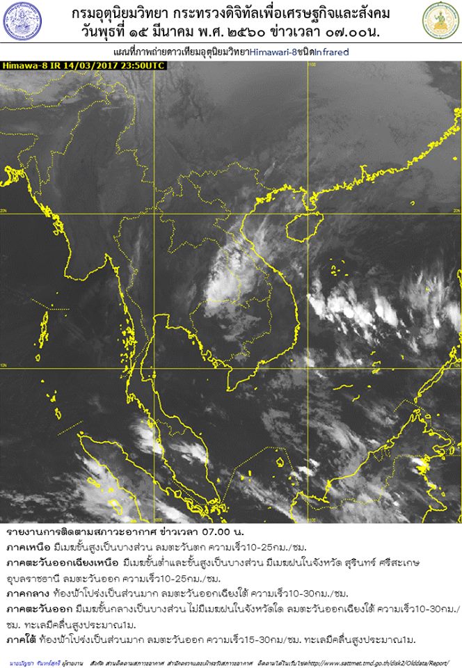 กรมอุตุฯเผยยังมีมรสุมทางทะเลอันดามันและอ่าวไทยกับมีหย่อมความกดอากาศบริเวณประเทสเวียดนามตอนบน เตือนภาคเหนือ ภาคตะวันออกเฉียงเหนือ ภาคตะวันออก และภาคใต้ ให้ระวังอันตรายจากฝนตกหน