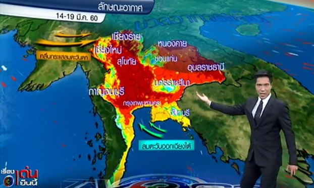 พยากรณ์อากาศ 24 ชั่วโมงข้างหน้า ประเทศไทยตอนบนมีอากาศร้อนในตอนกลางวันกับมีอากาศร้อนจัดในบางพื้นที่