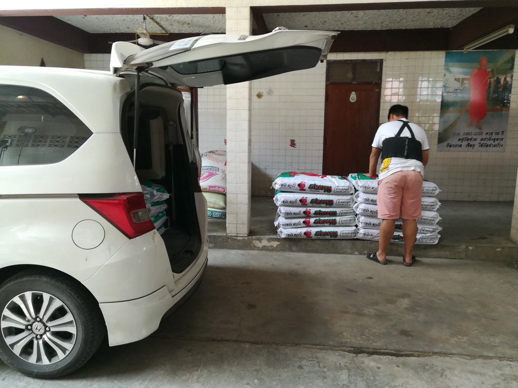 ท่านเจ้าอาวาส วัดทำเลทอง ทำการรับมอบอาหารเม็ด และเงินสด