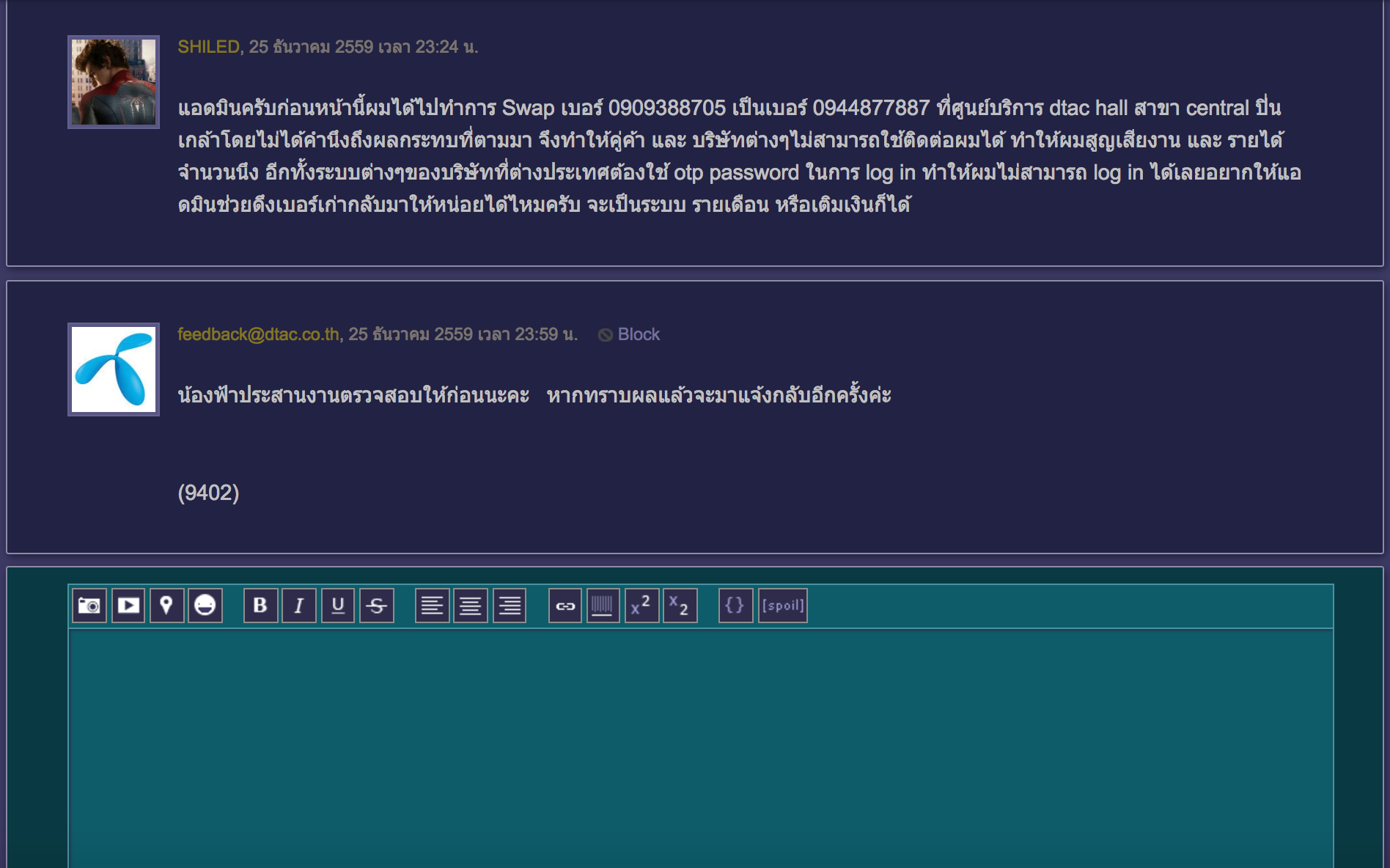 ??? feedback@dtac: กังขาเจ้าหน้าที่ dtac คุณทำงานกันอย่างไร...ขอให้ feedback เข้าไปชี้แจงและตอบข้อข้องใจ "หลังไมค์"