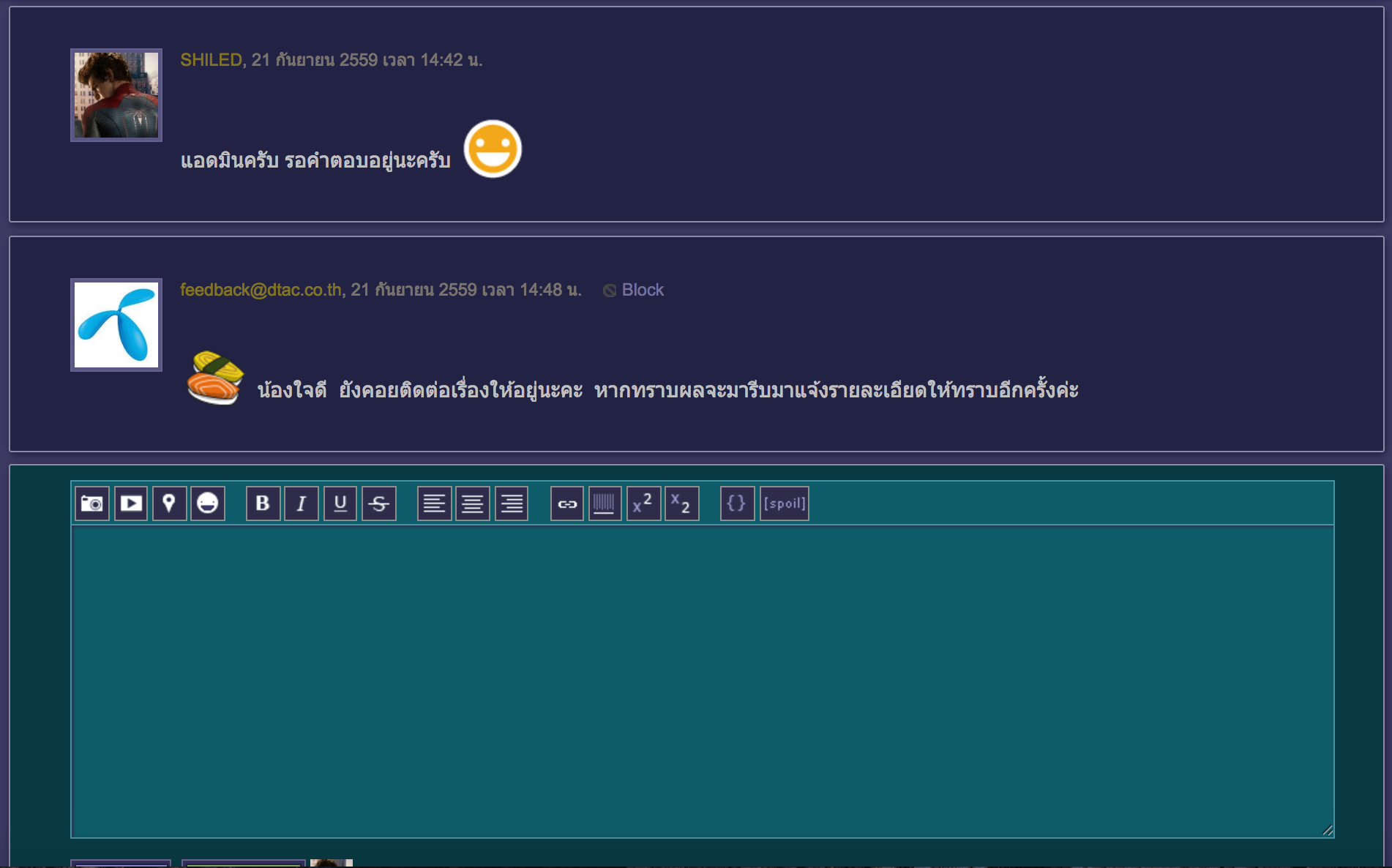 ** feedback@dtac.co.th และหรือ คุณต้นข้าว, คุณน้องใจดี กรุณาติดตามแก้ปัญหาต่อเนื่องที่หลังไมค์อีกครั้งด้วยครับ **