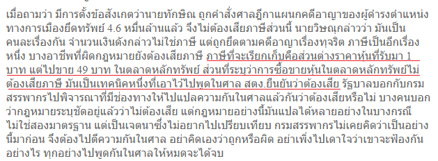 แปลความได้ว่า ถึงแม้กฎหมายจะบอกว่าไม่ต้องเสีย แต่ถ้าคลังจะเอาคุณก็ต้องจ่ายอย่างนั้นก็ได้เหรอ ... ประเทศไทย