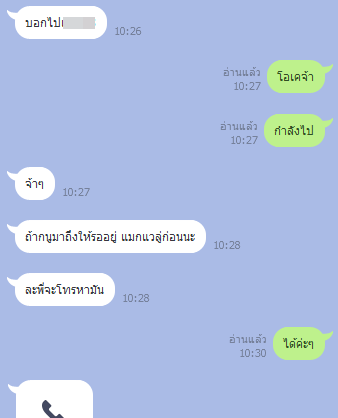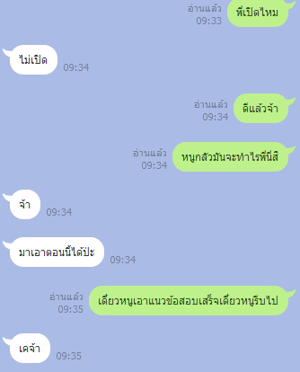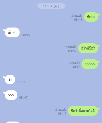 เรา : ค่ะ พี่มีไลน์ไหมหนูขอไว้หน่อย เพราะเดี่ยวหนูต้องไปเรียนก่อน เสร็จแล้วเดี๋ยวหนูไปเอา