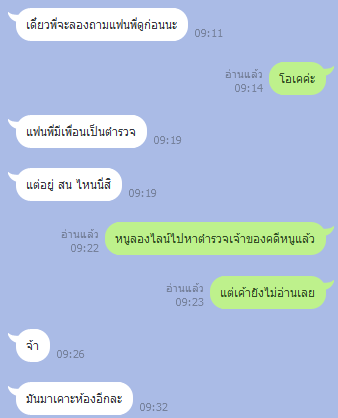 พอวันที่ 18 เราเลยไปแจ้งความที่ สน. แล้วลุงก็โทรมาถามว่าเรื่องมันเป็นมายังไงเดี๋ยวลุงไปหาที่ทำงานนะ แล้วหลังจากนั้นเราก็พยายามถามเอามือถือคนจากมัน มันบล็อกเฟซเราเพราะมันหมั่นไส้เรา ค่ะ!! เราไลน์ไปมันก็บอกว่าทุบทิ้งแล้ว แล้วบอกจะซื้อให้ใหม่ แต่ไม่มีวีแววอะไร เราเลยเลิกหวังละคิดว่าจะไม่เอาละ เราเลยไม่ทักไลน์มันไป แต่แล้ววันนึงมันก็ทักมาว่า