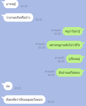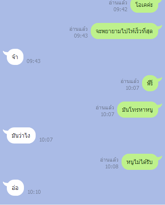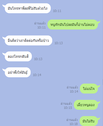แล้วมันก้นัดเราไปเรา แต่พอเรไปรอมันตรงที่นัดแล้วมันก็ยังไม่มา เราไลน์จิกมันแล้วมันตอบเราว่าอยู่อ่อนนุชกับพ่อ ค่ะ อห.เราไปรอจนดึกแล้วพึ่งมาบอกเราว่าอยู่อ่อนนุช F*ck เอ้ย หัวร้อม อารมณ์เสียมากวันนั้น ด่ามันสาดเสียเทเสียอะ พอวันถัดมาเราก็โทรไลน์หามันถามว่า
