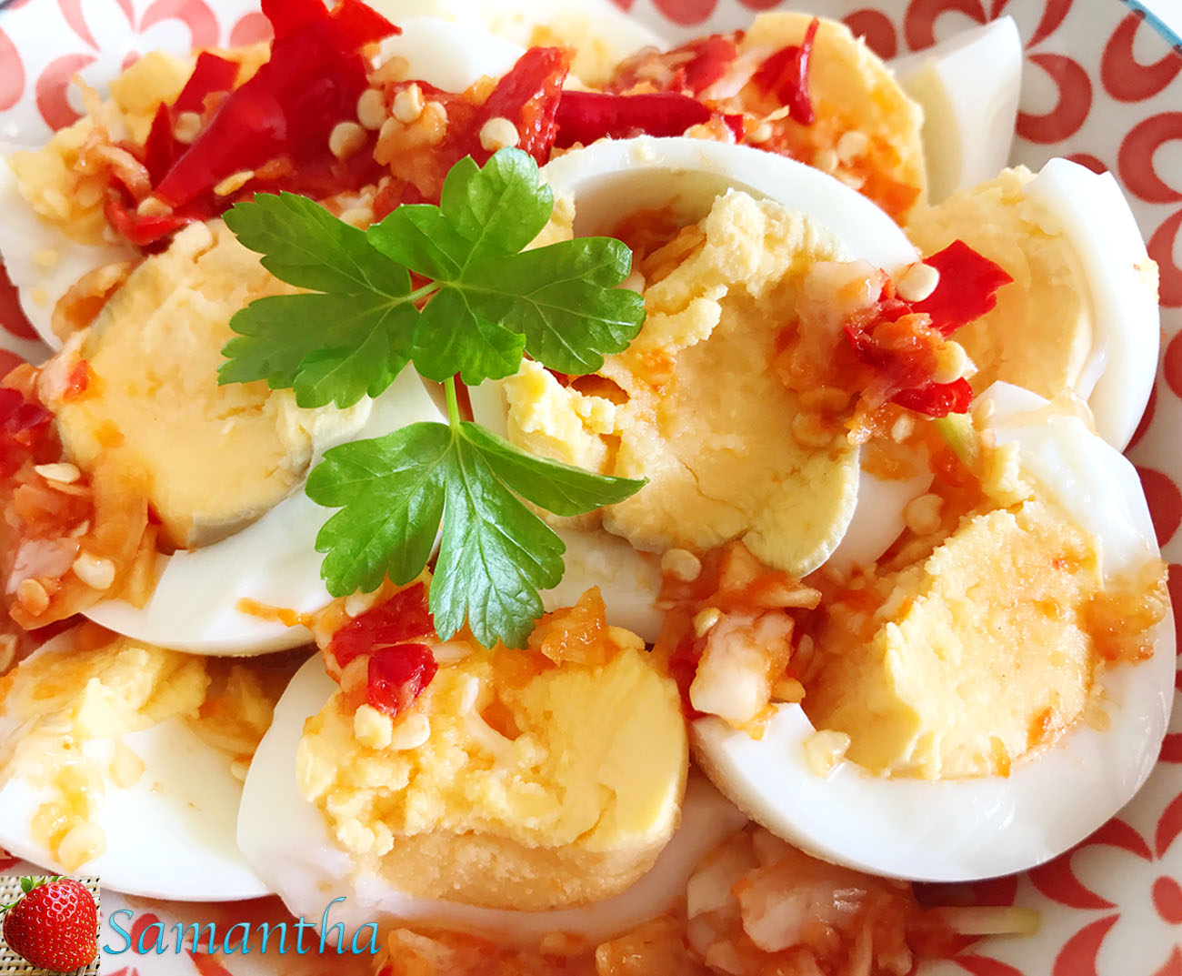 ไข่ต้มราดน้ำจิ้มพริกกระเทียมแซ่บๆ