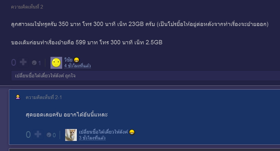 "ลูกสาวผมใช้ทรูครับ 350 บาท โทร 300 นาที เน็ท 23GB ครับ"