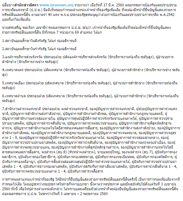 ป.ป.ช.เพิ่ม 69 ตำแหน่ง ต้องยื่นทรัพย์สิน รองอธิการ-ปลัดเทศบาล-‘บิ๊ก’ตร.เพียบ