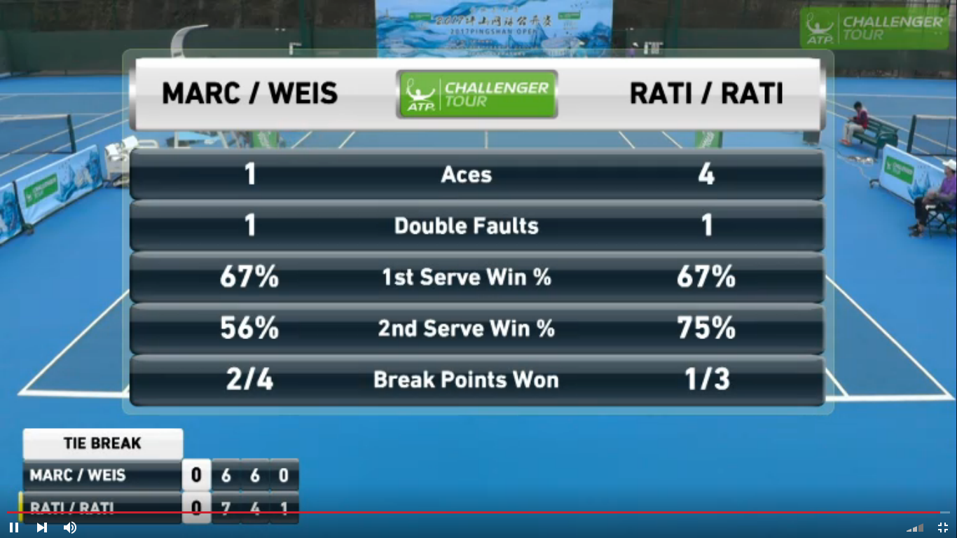 วันนี้ error เยอะเหมือนกันแฝดเรา โชคดีหน่อยที่ Weissborn มาตีหลุดช่วงปลายเซตสองจนลากมาถึงซูเปอร์ไทเบรก แฝดเราเลยอาศัยประสบการณ์เบียดเอาชนะมาได้ ตอนนี้เท่าทุนละ สามารถรักษาคะแนน Runner up 75K ของปีที่แล้วไว้ได้ พรุ่งนี้ขอให้สู้ๆ