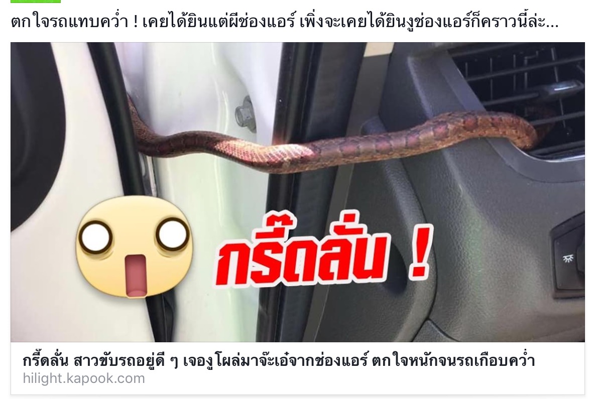 ถ้า "คุณเจองูช่องแอร์โผล่มาในขณะขับรถ" สิ่งแรกที่คุณจะทำคืออะไรครับ ?