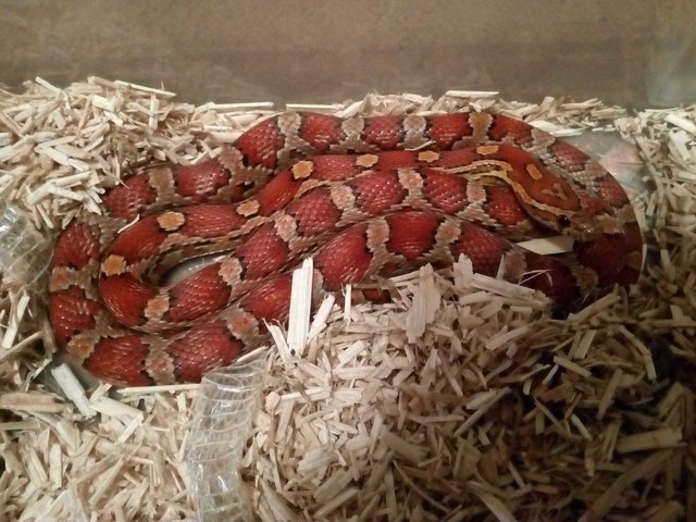 2. สังเกตจากในรูป ค่อนข้างแน่ว่ามันคือ งู Corn Snake ส่วนใหญ่น่ารัก เชื่อง ไม่ดุมาก กัดได้แต่ไม่มีพิษ แค่เลือดออกซิบๆชิลๆ