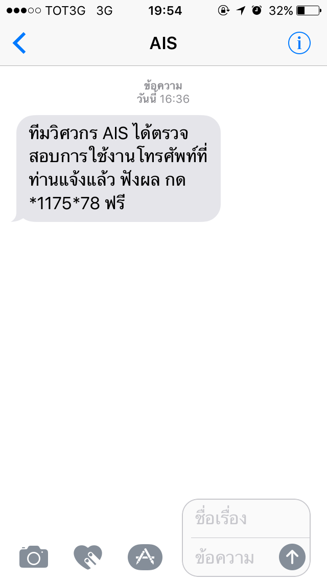 ตั้งแต่คราวที่แล้วที่ผมคั้งกระทู้ไป ก็บอกจะตรวจสอบให้ วันที่ 1 ส.ค. 2559 ก็มีข้อความบอกว่าตรวจสอบให้แล้ว พอกดฟังผลที่ *1175*78 ก็บอกไม่มีข้อมูล บริการได้ห่วยมากนะครับ จากนั้นก็มีพนักงานโทรมาสอบถามแล้ว