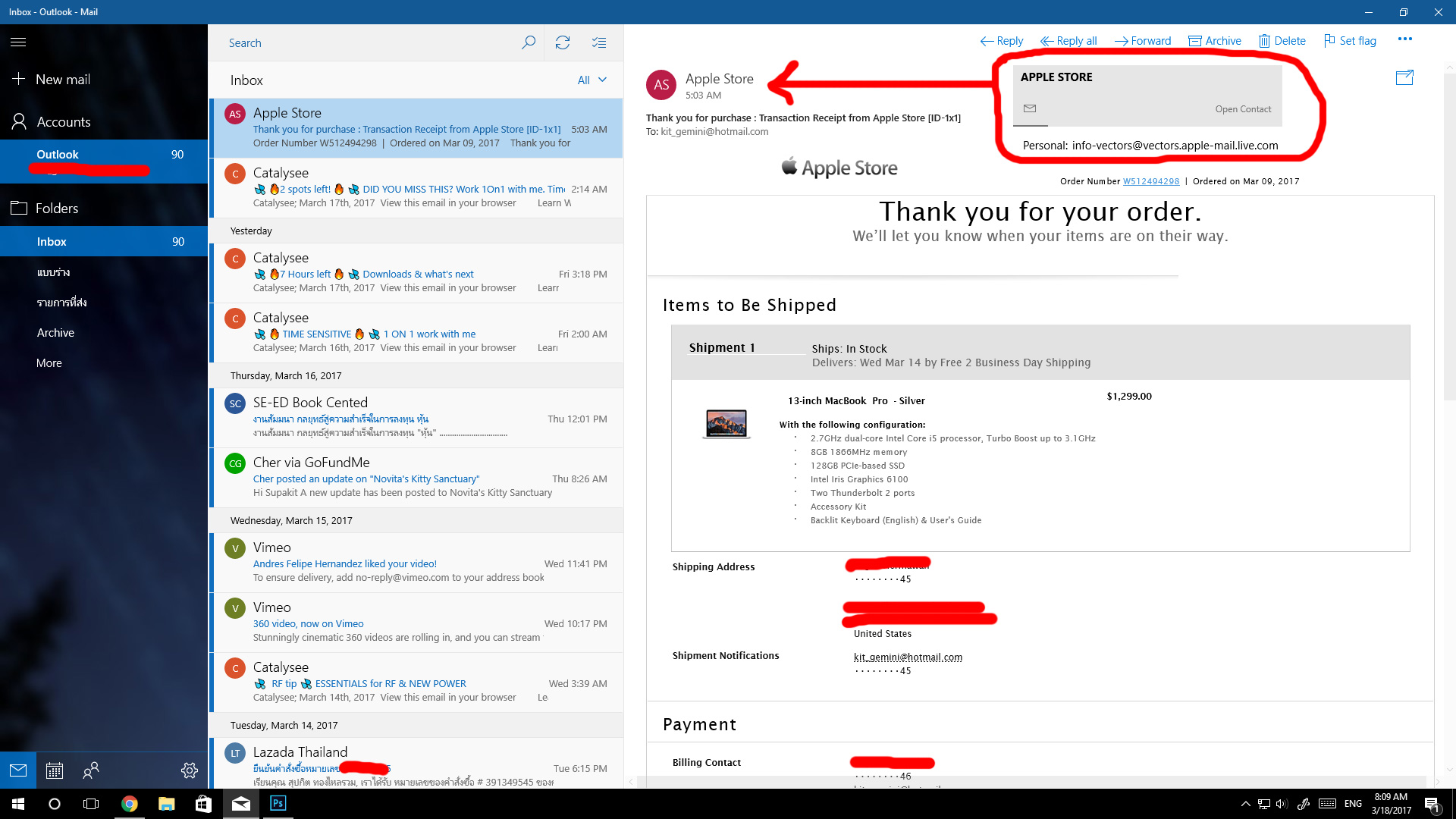 ขอสอบถามเกี่ยวกับเมลล์จาก Apple