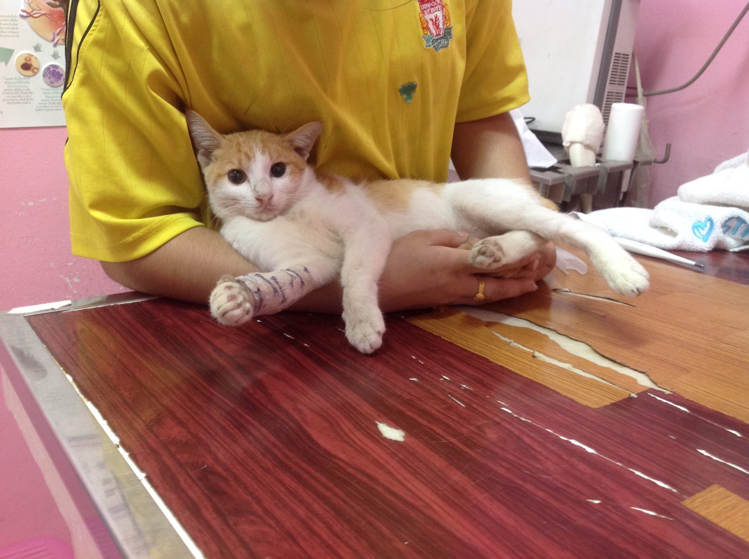น้องเป็นแมวที่ถูกรถชนเมื่อสัปดาห์ก่อน และ จขกท. พาไปรักษาโดยที่เพื่อนๆร่วมสนับสนุนคชจ.
