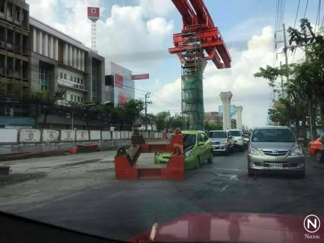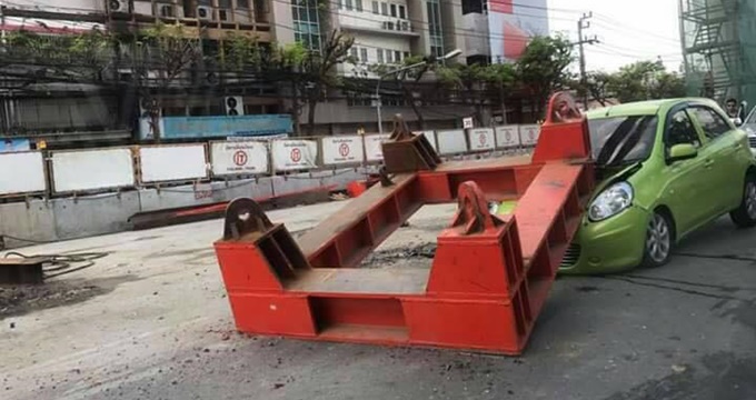 คือหากดูจากภาพ จะเห็นว่า ผู้ก่อสร้างรถไฟฟ้าประมาทเลินเล่ออย่างเห็นได้ชัด มีการยกเครน มีโครงเหล็กข้ามไปมา กลางถนนที่มีรถวิ่งพลุกพล่าย "โดยที่ไม่มีแผงกั้นขอบทาง" และแถมยกยื่นล้ำออกมาถึงตัวท้องถนน แสดงถึงความชุ่ยอย่างให้อภัยไม่ได้ ในกรณีแบบนี้ แม้ตัวผู้เสียหายไม่ได้รับบาดเจ็บ แต่เสียทรัพย์ คือ รถ จะสามารถฟ้องให้เอาผิดฐานประมาทจากกรณีนี้ใด้มากกว่าที่เป็นอยู่อย่างไรหรือไม่ อยากให้เป็นกรณีตัวอย่าง ที่ไม่ใช่ตบหัวและลูบหลัง