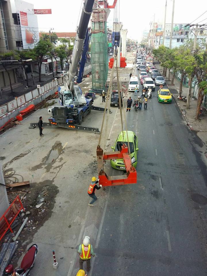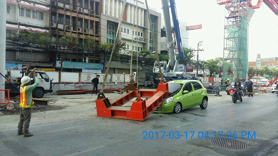 เหตุการณ์โครงเหล็กโครงการรถไฟฟ้าร่วงลงมาทับรถเก๋ง ตอนใช้เครนยกเหล็กออก เป็นไปตามมาตรฐานความปลอดภัยยังครับ