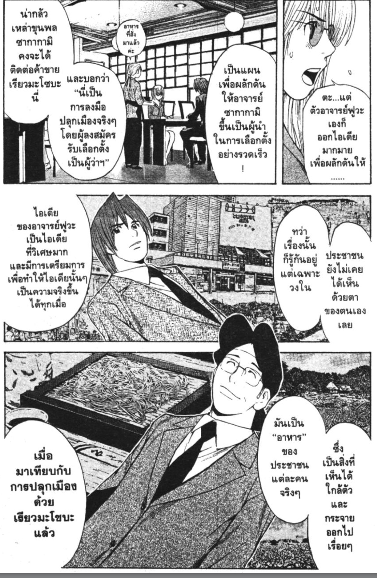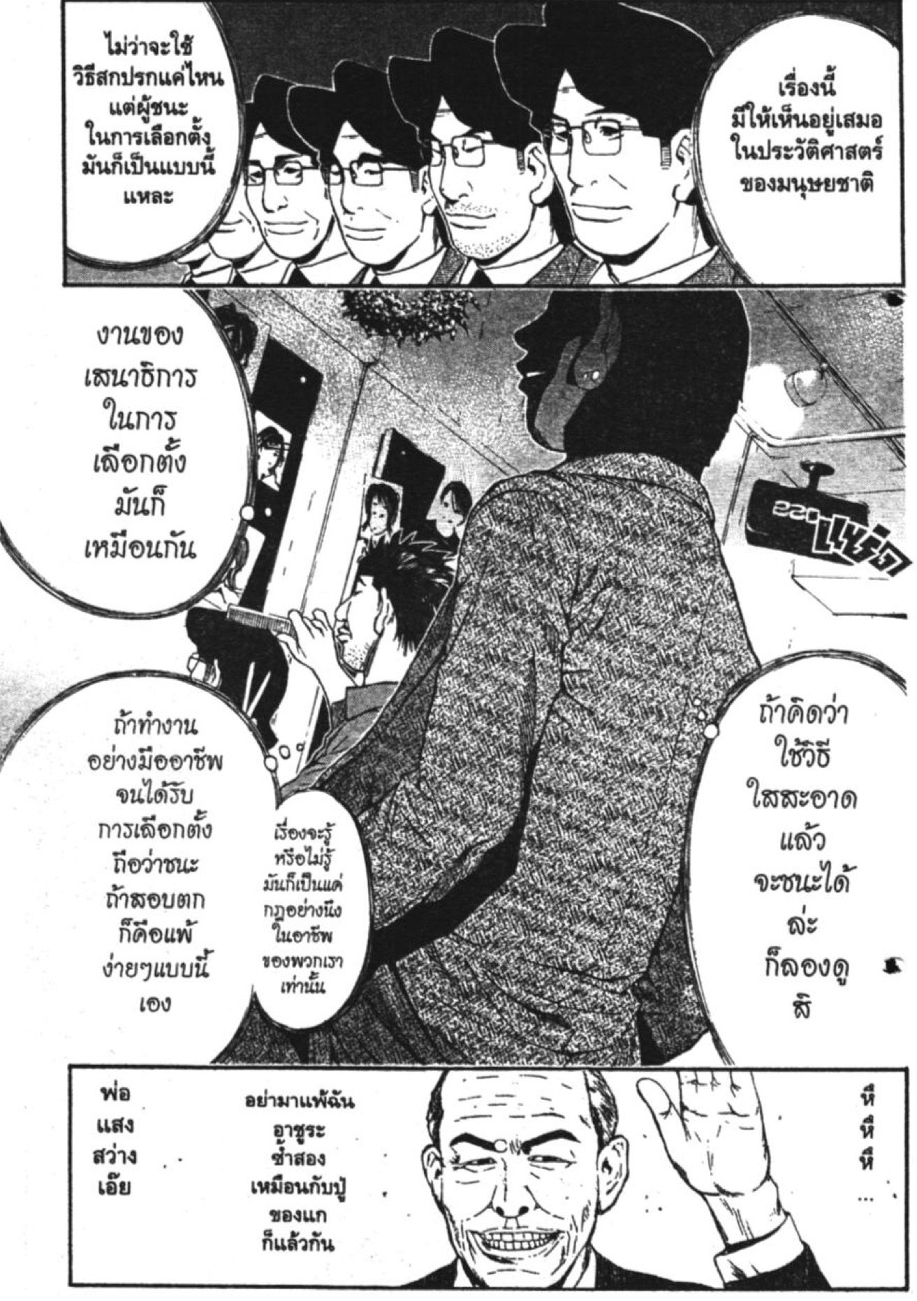 แน่นอน เมื่อพูดถึงการเมือง ก็คือ การเลือกตั้ง การหาเสียง นักการเมือง ในการ์ตูนนี้ อัดแน่นไปถึงการเลือกตั้ง กลยุทธต่างๆ ความรู้เกี่ยวกับการเมืองอัดแน่นเต็มไปหมด