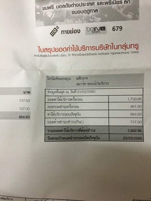 สอบถามเรื่องใบแจ้งหนี้เนตบ้าน TOT ครับ (TOT fiber 2U )