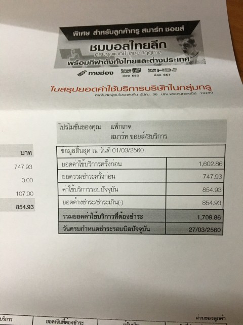 รอบบิลอินเทอร์เน็ตรายเดือน ทรูมูฟ เอช ไม่ขึ้นให้ชำระ ทำยังไงดี