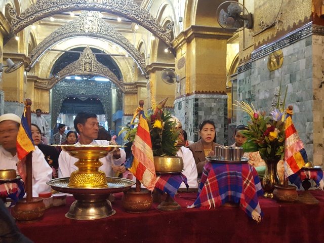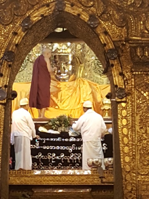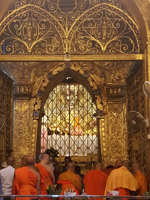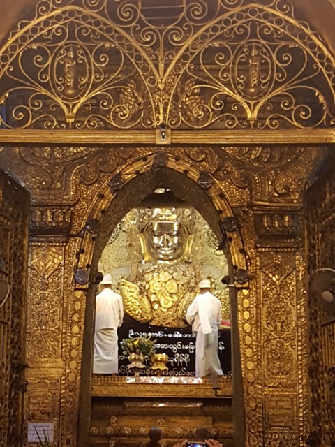 สักการะพระพุทธรูปทองคำเนื้อนิ่ม(เนื่องจากความหนาของทองคำเปลว) ปางมารวิชัยในพิธีศักดิ์สิทธิ์สูงสุด 1 ใน 5 ของพม่า กอปรกับชาวเมียนมาร์ที่มาด้วยความเลื่อมใสแรงกล้าอยู่ล้อมรอบทำเอาเรารู้สึกเหมือนอยู่ใจกลางพลังแห่งศรัทธาเยียวยาจิตและเกิดปิติในใจ ก้มลงกราบด้วยระลึกกุศลบุญที่ทำให้เรามาที่นี่ได้ ความรู้สึกล้วนๆ ส่วนประวัติหาอ่านได้นะคะ มีผู้รู้เขียนไว้มากมาย
