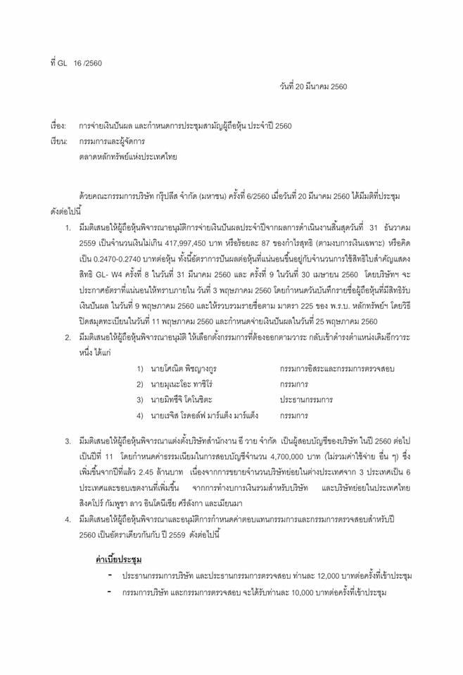 *** GL ปันผลในช่วง 0.2470-0.2740 บ./หุ้น สรุป 3 พ.ค. XD 4 พ.ค***