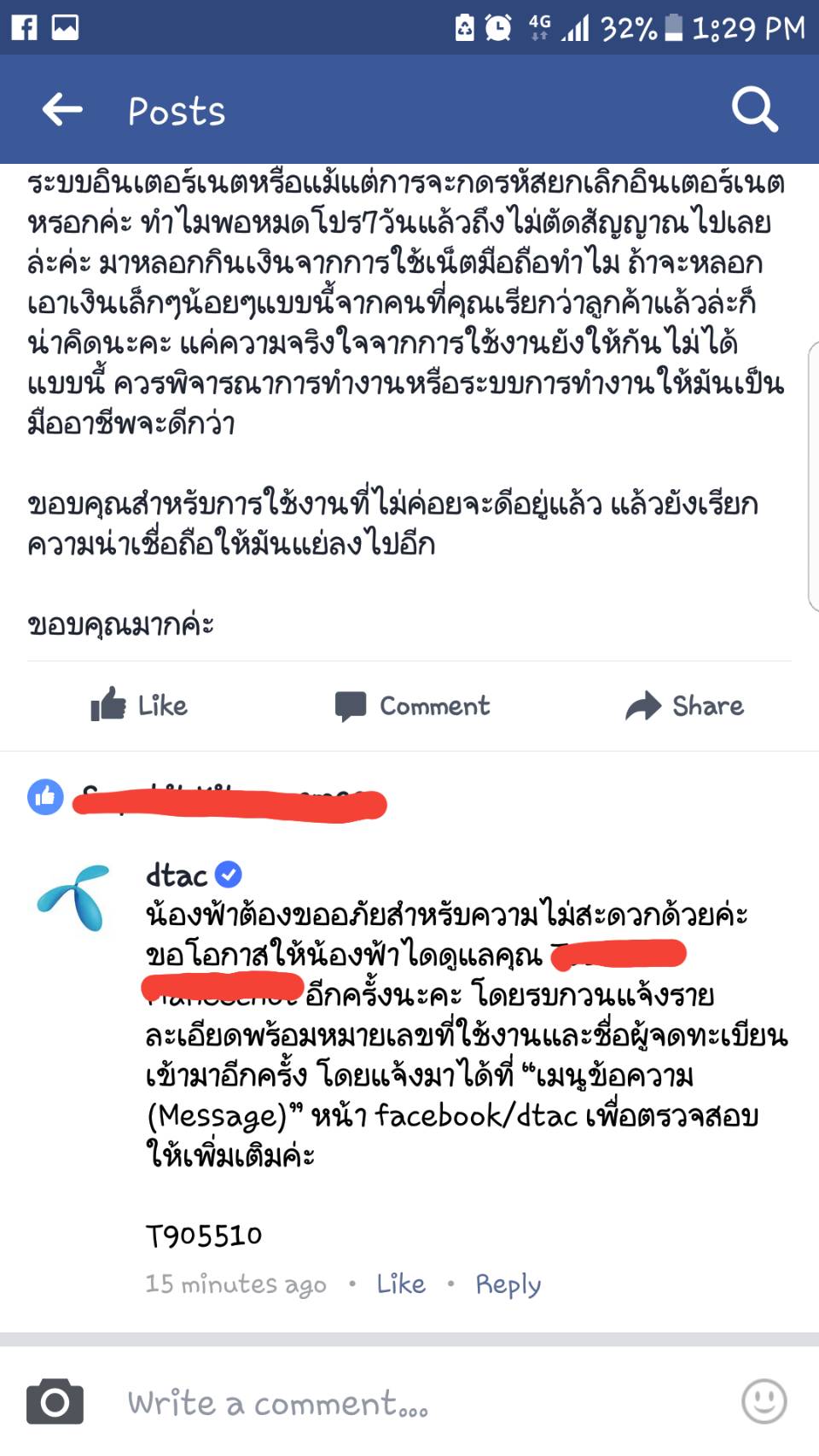 คือเราใช้ดีแทคมาเป็น10ปี รวมถึงทุกคนในบ้าน พ่อ แม่ พี่ชาย พี่สาว(ซึ่งตอนนี้ย้ายค่ายไปแล้ว) ซึ่งไม่เคยมีเรื่องอะไรที่ไม่โอเคถึงขนาดนี้ เคยคิดจะย้ายค่ายแต่ก็ด้วยความอยู่กันมานาน ก็เลยอยู่กันแบบคนสนิทกันต่อไป