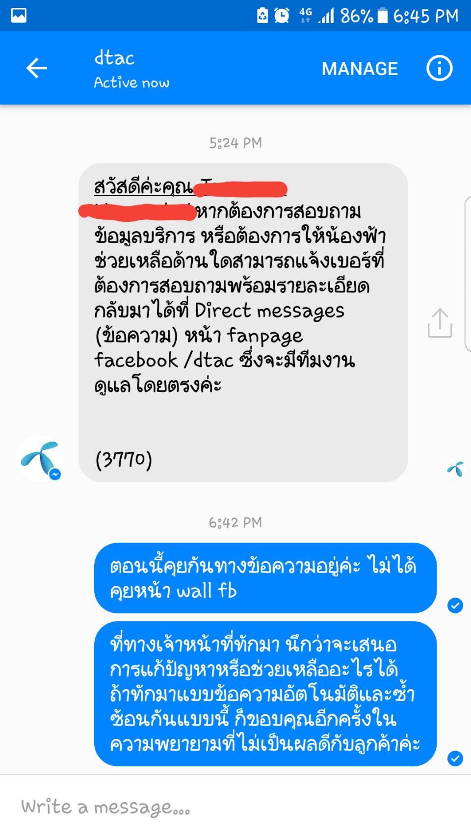 พอโพสไปไม่นานก็มีคอมเม้น(อัตโนมัติ)จากทางเจ้าหน้าที่มาให้เราอินบ็อกไปแจ้งเรื่องความไม่สะดวกอะไร บลาๆ เราก็อินบ็อกไปหวังจะมีความช่วยเหลือหรือเจ้าหน้าที่จะมีสายตรงมาคุยบ้าง