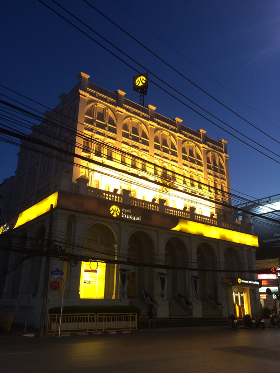 เดินหาไปที่พัก ก็มีอาคารต่างๆ ที่เปิดไฟสวยงามยามค่ำคืน