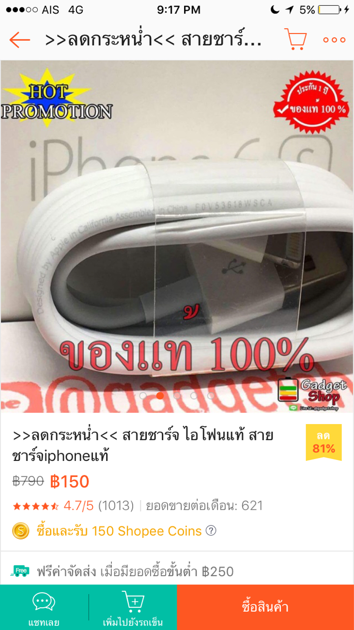 เห็นหลายร้านจะใช้คำโฆษณาประโยคแนวๆเดียวกันหมดเลย คือ ของแท้ 100% ส่งเคลมศูนย์ได้แต่ลดราคาถูกกว่าศูนย์ประมาณครึ่งนึง เช่น สายชาร์จ ของแท้ ที่ apple store online