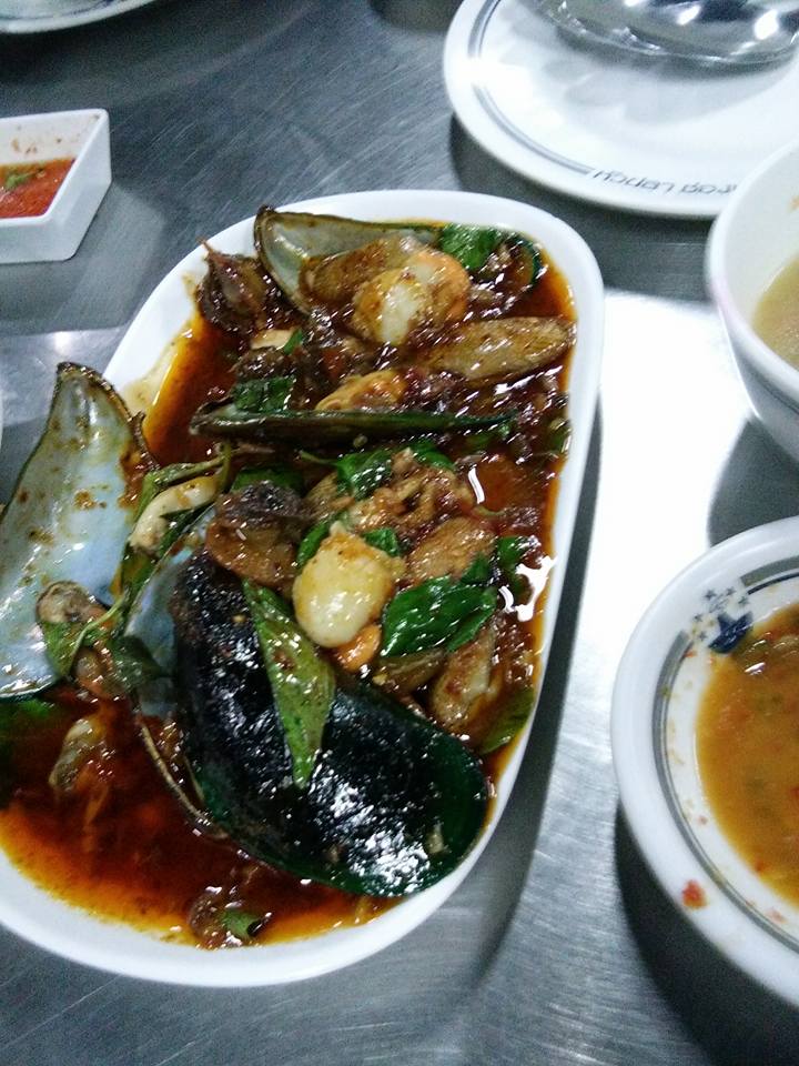 แวะผ่านมาแถวสัตหีบ เที่ยงพอดีเลยต้องหาอะไรกินหน่อย ร้านเข้าตรงแถวแยกเตาถ่าน เริ่มจากหมึกผัดไข่เค็ม กุ้งผัดน้ำมันหอยใส่เห็ด ไก่ผัดเม็ดมะม่วงหิมพาน หมูแดดเดียวจริ