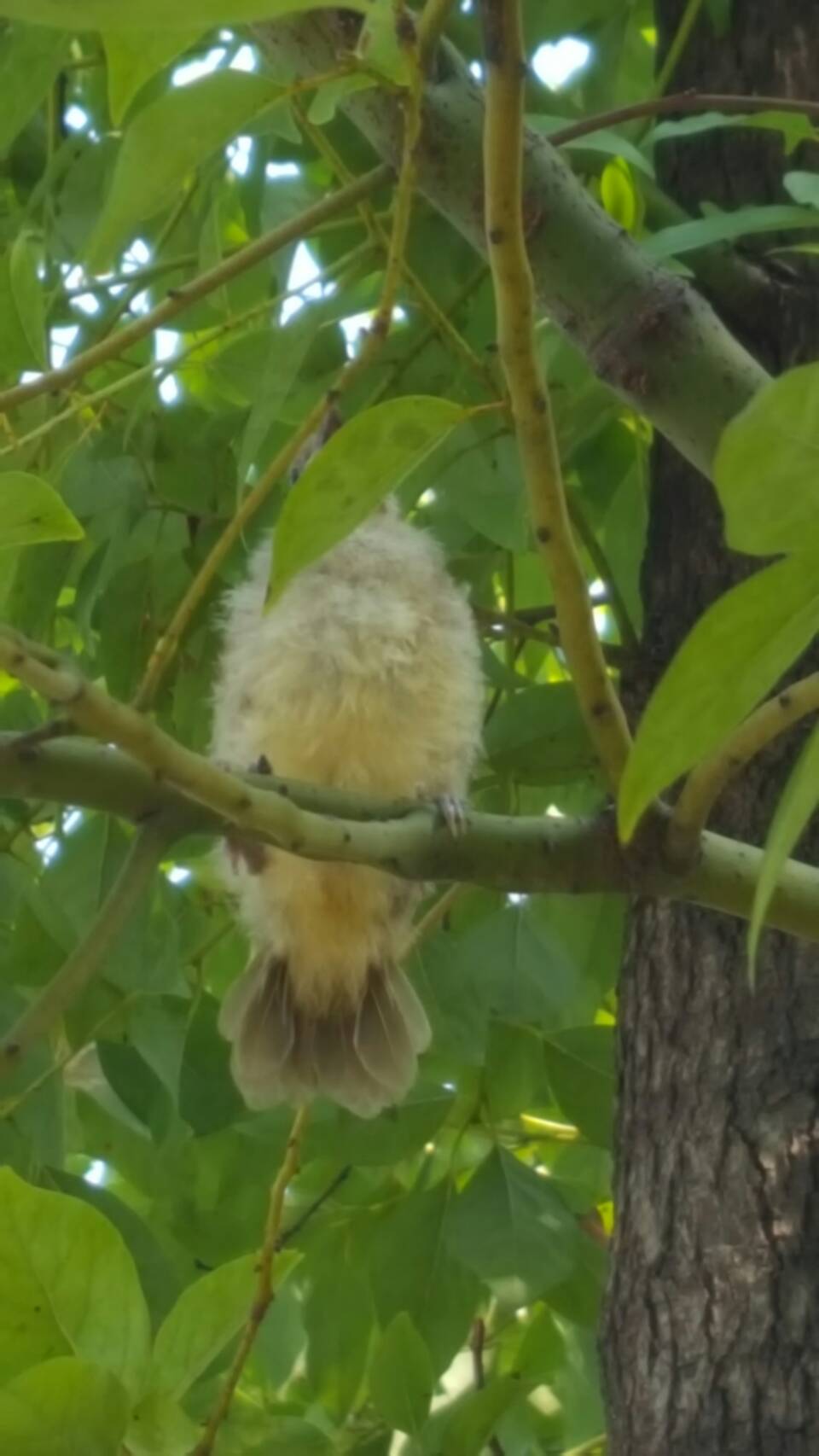 เมื่อวานตอนบ่าย (วันที่ 24) เจอลูกนกตัวนี้ กำลังหัดบิน มีพ่อแม่อยู่ใกล้ๆ ที่บ้านมีหมา 3 ตัว หมาตัวหนึ่งกำลังจะพุ่งเข้าใส่ ดิฉันก็เลยรีบจับลูกนกใส่กรงไว้ก่อน รอใ