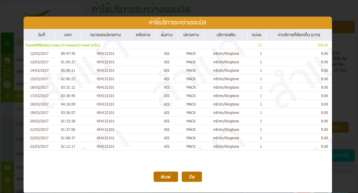 ล่าสุดผมเข้าไปเช็ค Eservice เห็นมีค่าบริการ mEntn/Ringtone คิดว่าแม่คงไปกดโดนหรือเปล่า อันนี้ไม่แน่ใจ
