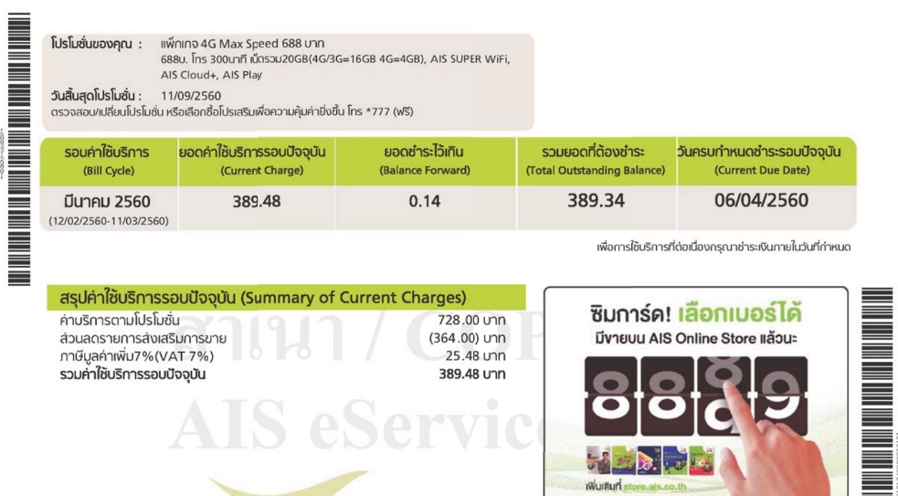 ค่าใช้บริการนี้จาก my AIS ซึ่งตรงกับตู้ที่ผมจ่ายอัตโนมัติ