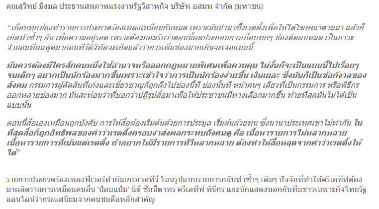 เรตติ้งครอบงำสื่อ บีบรายการซ้ำซาก แข่งร้องเพลงเกลื่อนจอ