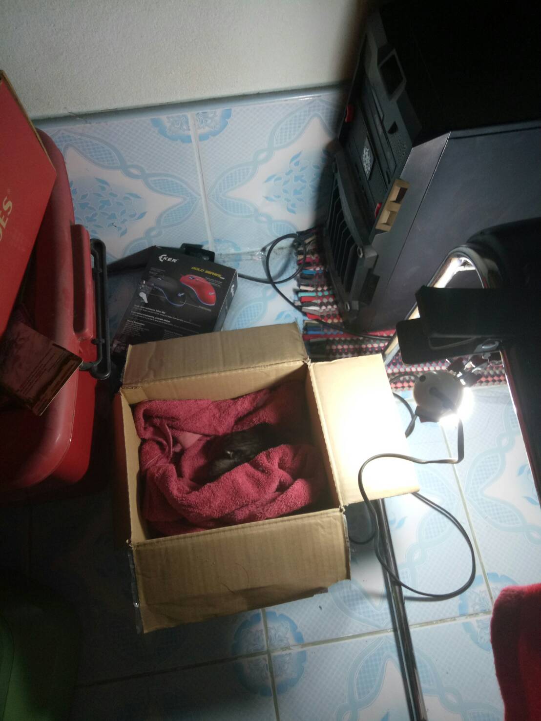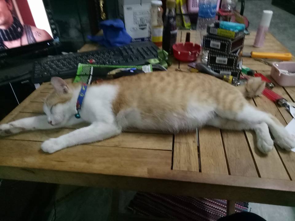 แม่มันก็มาขออยู่ด้วยที่บ้านตอนมันอายุได้ประมาณ 4 เดือน เราไม่เคยเลี้ยงแมวมาก่อน ให้อาหารเม็ด