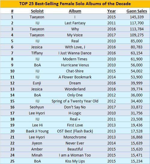 TOP25 Best-Selling Female Solo Albums Of the Decade