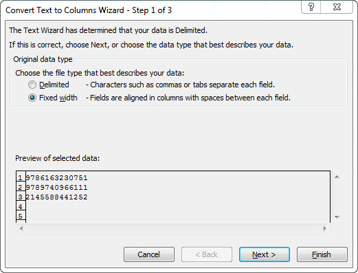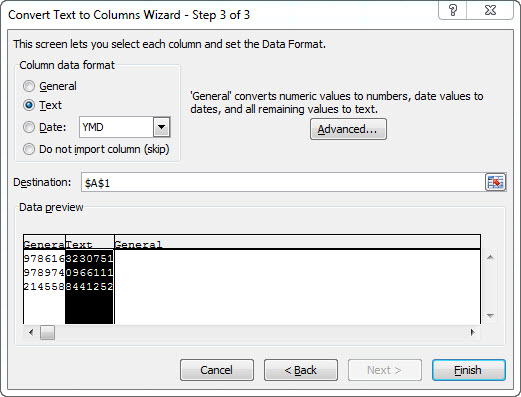 เลือก Column data format ในช่อง 7 ตัวหลังเป็น Text แล้วกด Finish ตามรูปครับ