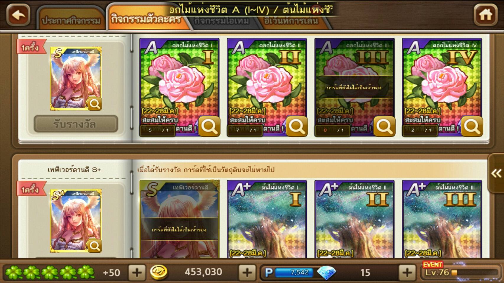 ตอนแรก สุ่มจนท้อ ขาด A 3 กับ A+2 เลยตัดใจไม่เอาละ แต่เห็นแจก แพค 5 ใบ เลยเปิดดู ได้ A+2 ซะงั้น เลยทุ่มสุดตัว เปิดหา A3 สุดท้ายหมดตัว ไม่เจอ A3 สักใบ T-T เกมมันล่อให้ใช้เพชร ให้หมดตัวใช่ไหมเนี่ย T-