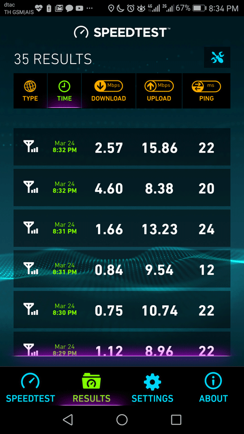 ที่ต้องลองมาลอง Speedtest เพราะตัวที่ใส่ Notebook รู้สึกช้ามากครับ ไม่ติด FUP ทั้ง 3 เบอร์