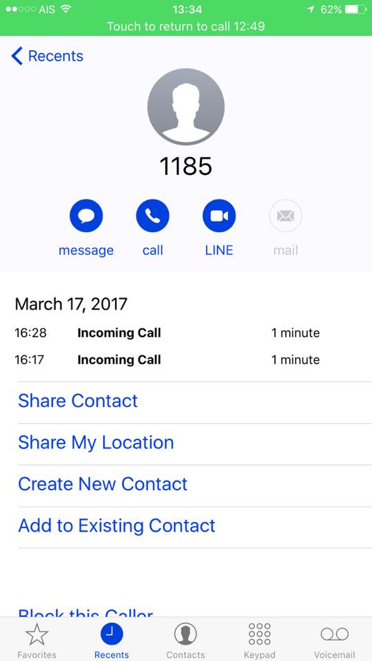 เราเลย Caption รูปประวัติการโทรเข้า-ออกของเราที่มีกับ 1185 ทันทีค่ะ และคิดในใจเลยว่า "โดนเข้าแล้ว" ขนลุกเลยค่ะอันนี้คือจุดที่เราเริ่มฌพสต์ใน Facebook และ twitter กับเรื่องราวที่เราพบเจอค่ะ เราพลาดตรงที่ไม่ได้ถามฃื่อเลยว่าเราคุยกับเจ้าหน้าที่ชื่ออะไรบ้าง