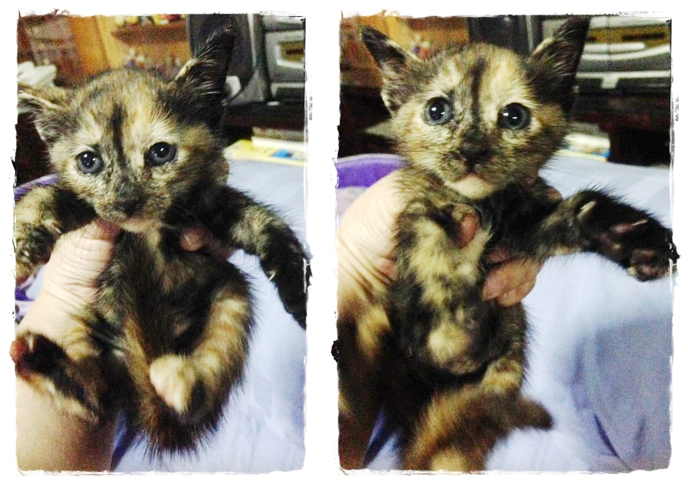 มาขอความเมตตาหาบ้านให้ลูกแมวตัวนี้ค่ะ.. อายุน่าจะประมาณ 1.5เดือน พี่สาวได้ยินเสียงลูกแมวร้องตรงระเบียงห้องนอน คาดว่าแม่มาคลอดไว้ แล้วตอนนี้คงทิ้งลูกแล้ว พี่สาวบอกว่าเมื่อวันก่อนแม่บ้านมาบอกว่า มีลูกแมวนอนตายอยู่ตัวนึงตรงระเบียงห้องเขา แม่บ้านเพิ่งเก็บซากไป คิดว่าคงเป็นพี่น้องของตัวนี้ค่ะ ซึ่งพี่สาวเขาเลี้ยงแมวไม่เป็นและไม่คิดจะเลี้ยงด้วย ส่วนเราเองภาระเราก็เยอะแยะแล้ว ไม่สามารถที่จะรับเพิ่มได้จริงๆค่ะ