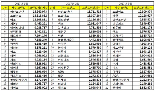 [Spoil] คลิกเพื่อดูข้อความที่ซ่อนไว้https://www.soompi.com/2017/03/24/march-singer-brand-reputation-rankings-revealed/