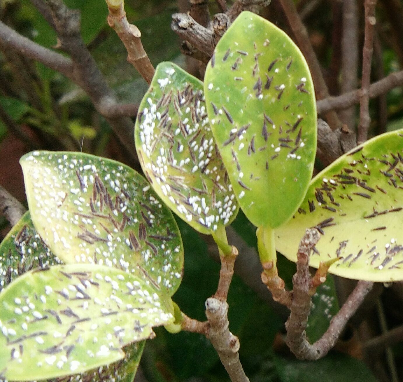 ต้นไม้มีเม็ดดำๆ ขึ้นเต็มเลย แก้ยังไงดีคะ
